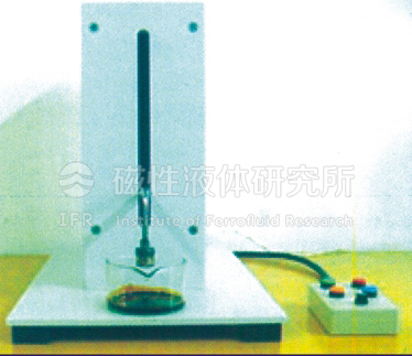 磁性液體界面不穩(wěn)定性顯示儀是一種顯示磁性液體特殊性質(zhì)的裝置:接通電機(jī)電源,永磁體開始做上下往復(fù)運(yùn)動,永磁體在下部容器區(qū)域形成磁場的變化,容器中磁性液體表面隨著永磁體的升降而發(fā)生變化,當(dāng)電機(jī)電源切斷時磁性液體表面突起的小刺會在恒定磁場作用下停留在一定位置。在這個裝置中,我們能看到磁性液體處在強(qiáng)磁場中界面不穩(wěn)定的現(xiàn)象。促使人們思索磁性液體界面不穩(wěn)定性的起因、機(jī)理及應(yīng)用。磁性液體界面不穩(wěn)定性顯示儀整機(jī)及展示效果如圖。